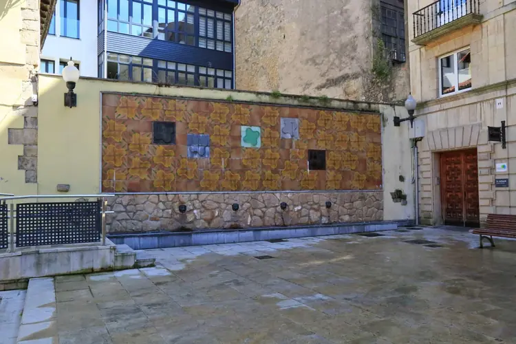 Mural «Centenario de las fiestas de El Bollo» en Avilés. Autor: Ramón Rodríguez (Avilés, 1943). Ubicación: plaza de Camposagrado (Avilés). Año de instalación: 1993. Datos: Serigrafía cerámica sobre gres in ...